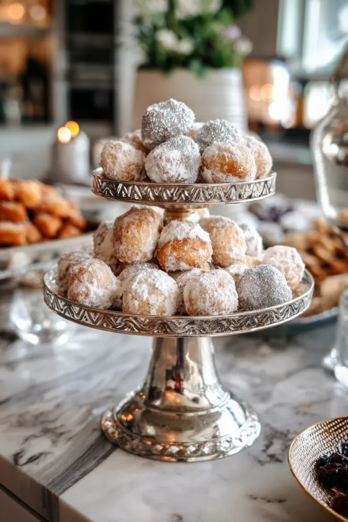 If you’re not into a traditional cake, this is a must-have. I just adore the way the simple donuts look so glamorous just by adding that hint of glitter and silver. It takes something casual and makes it feel perfectly formal and celebratory. Plus, they look super easy to grab and eat, which is a major bonus at a party. It’s a delicious and dazzling twist on a classic treat.