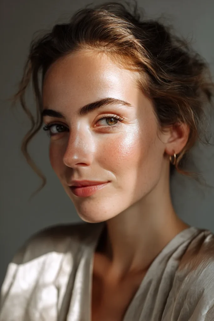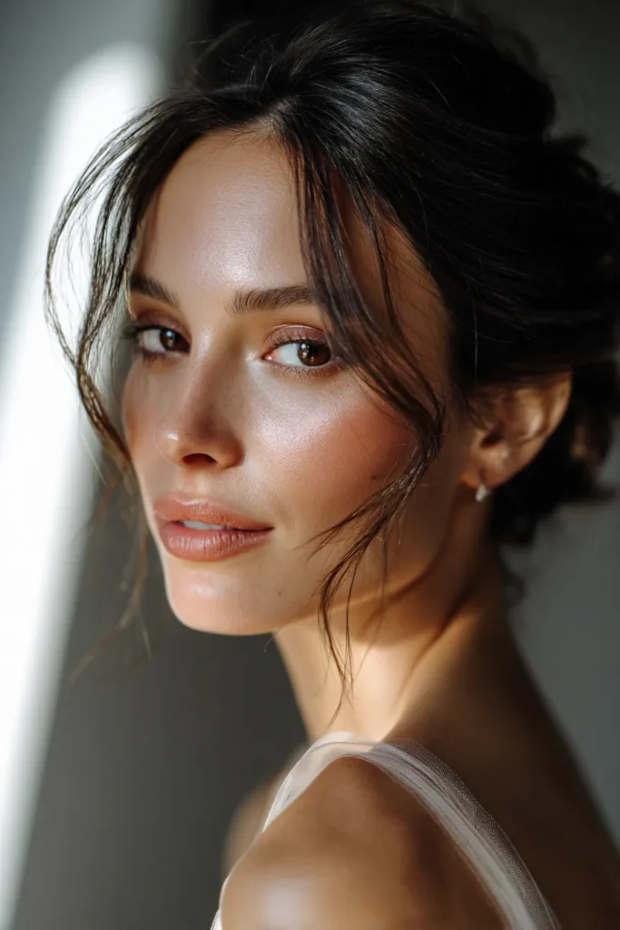 Honestly, this makeup is giving me all the supermodel-off-duty vibes, but make it bridal. I’m obsessed with the extreme dewy finish; it makes the skin look so healthy, youthful, and unbelievably luminous. It’s incredibly bold in its minimalism, proving that you don’t need a smokey eye to be striking. If you’re into a truly clean, hyper-modern aesthetic where your skin steals the show, this look is your winner. That effortless, healthy glow is seriously infectious.