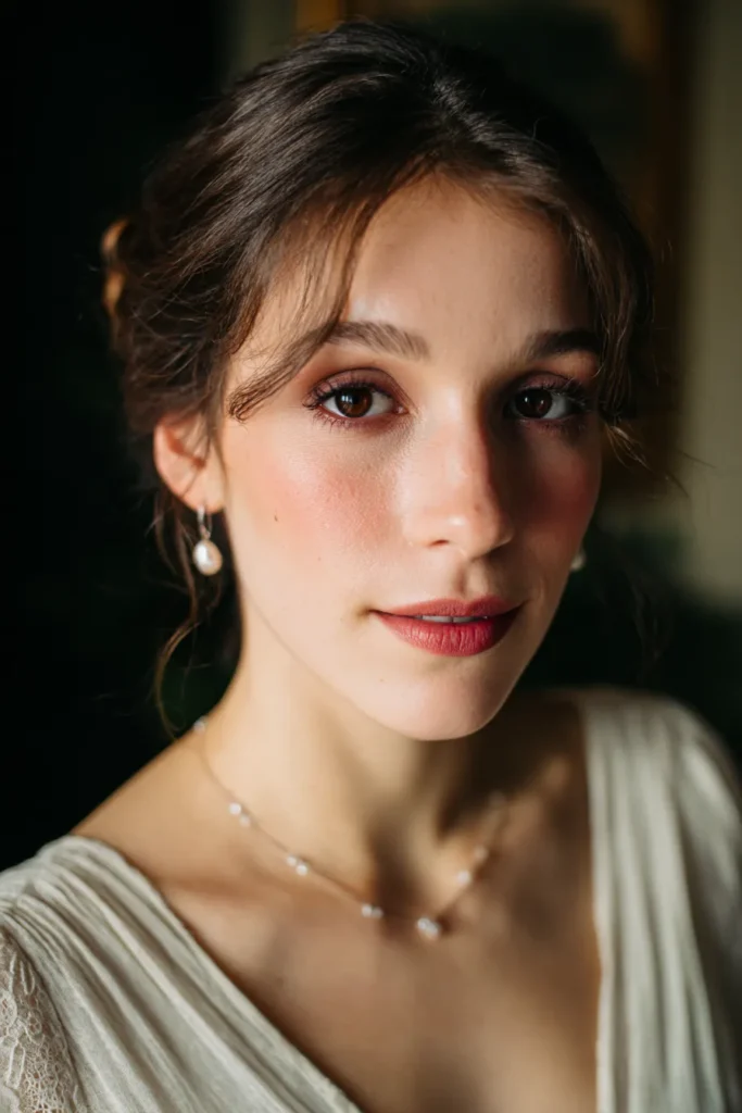 Oh my gosh, I just adore how romantic and sophisticated this look is. It’s the perfect way to wear a bit of drama without going full smokey eye, thanks to those rich, soft brown tones. The way the light hits that subtle shimmer on the eyelid and the beautiful glow on the cheeks is just pure perfection. It feels incredibly balanced and elegant, making you look polished and glowing from every angle. This is definitely giving me those dreamy, candlelit winter wedding vibes.