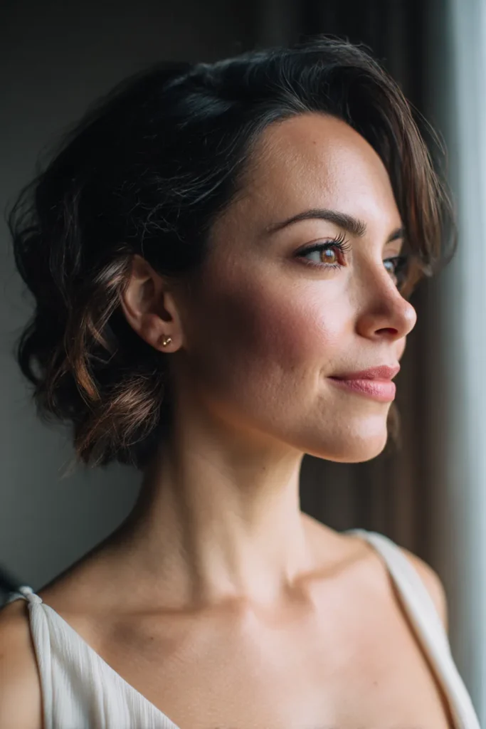 I am completely obsessed with this look because it’s the definition of chic and sensual bridal glam. The way the light hits those cheekbones is pure magic, giving you that super healthy, happy glow we all dream about. It feels warm and rich, which is perfect for a winter wedding where you want to bring a little bit of that summer goddess energy. The focus on the glowing complexion and bold brow keeps it super modern, making you look absolutely radiant and unforgettable.