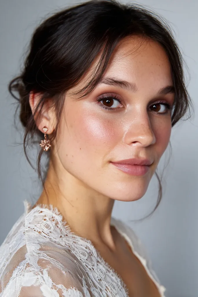 I am absolutely obsessed with how naturally stunning and radiant this look is. It truly captures that golden hour magic, making you look like you’re perpetually basking in a beautiful glow. It’s so fresh and clean, highlighting your natural features without feeling heavy or overdone at all. If you’re into a truly minimalist approach where your natural beauty shines brightest, this effortlessly gorgeous makeup is absolutely perfect for a winter wedding. It proves that sometimes the simplest touches make the biggest impact.