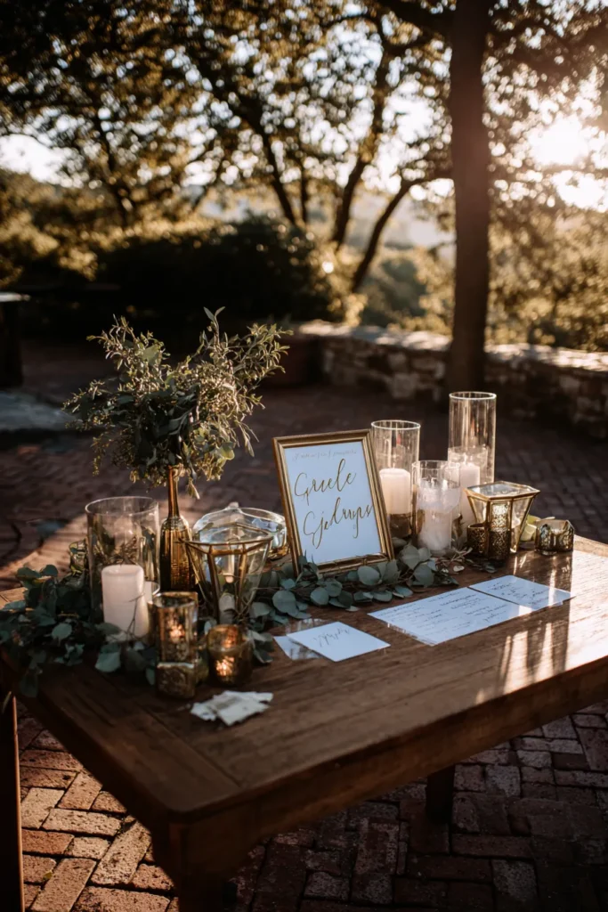 I am completely head over heels for this rustic-chic dessert table because it just feels so incredibly abundant, warm, and utterly inviting! If you’re into a vibe that’s both elegant and deliciously down-to-earth, this is your dream come true. I adore how the soft, flickering candlelight makes all the pastries and that gorgeous cake look even more tempting, and the way the greenery adds a fresh, organic touch is just perfect for winter. It feels like a cozy, sophisticated barn wedding or a stunning holiday party, and honestly, I just want to grab a slice of everything and bask in that beautiful glow.