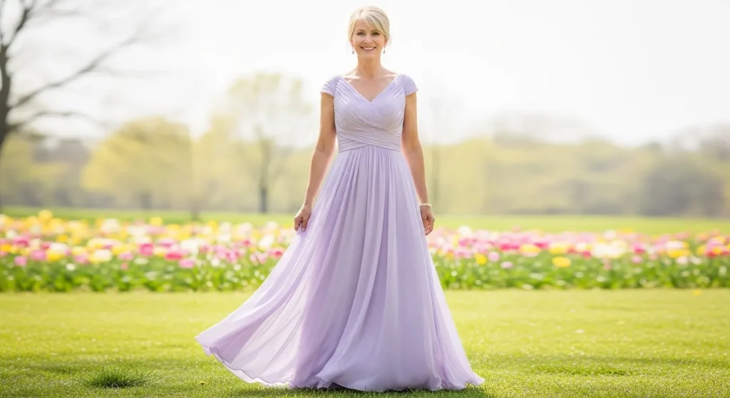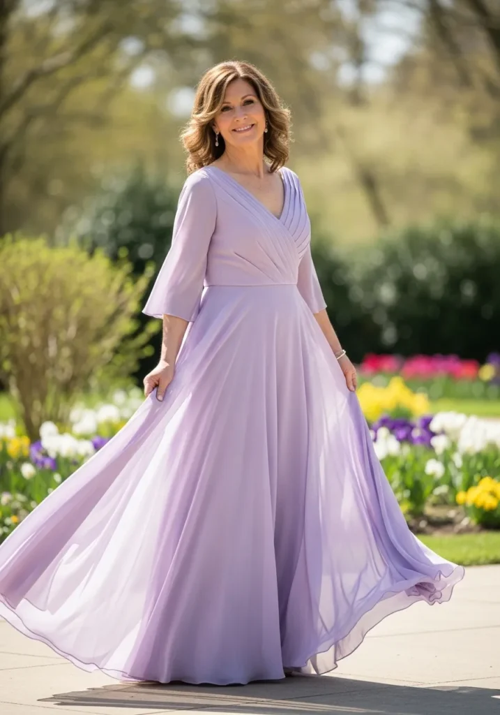 Soft Lavender Chiffon Gown with Flowing Skirt