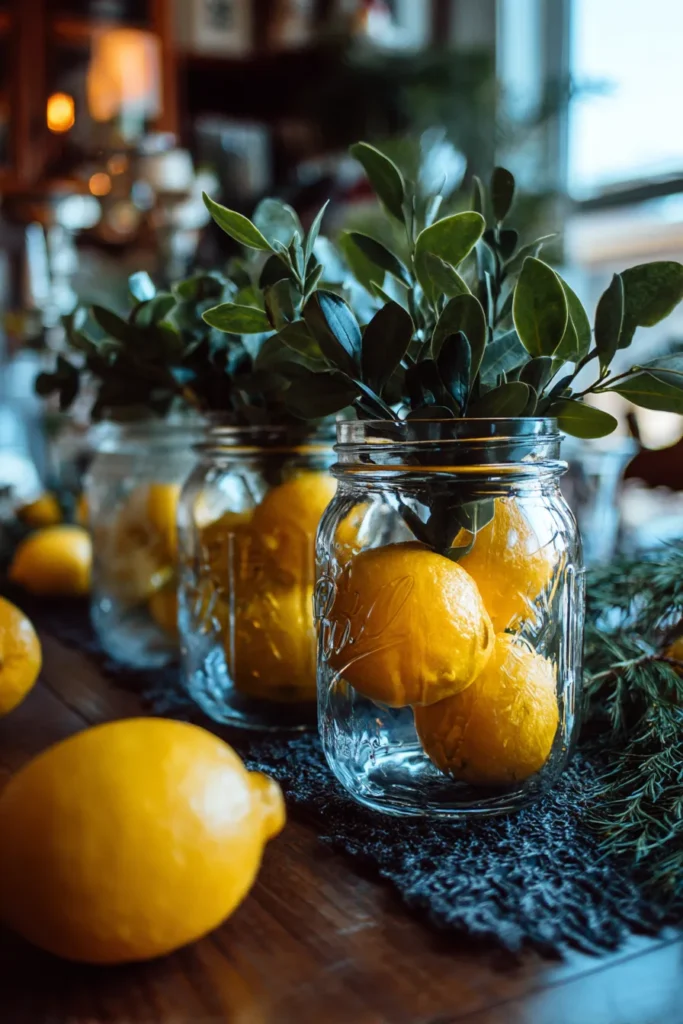 Lemon and Greenery Mason Jar Centerpiece
