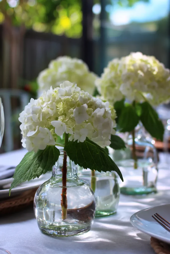 White Hydrangea Glass Vase Centerpiece