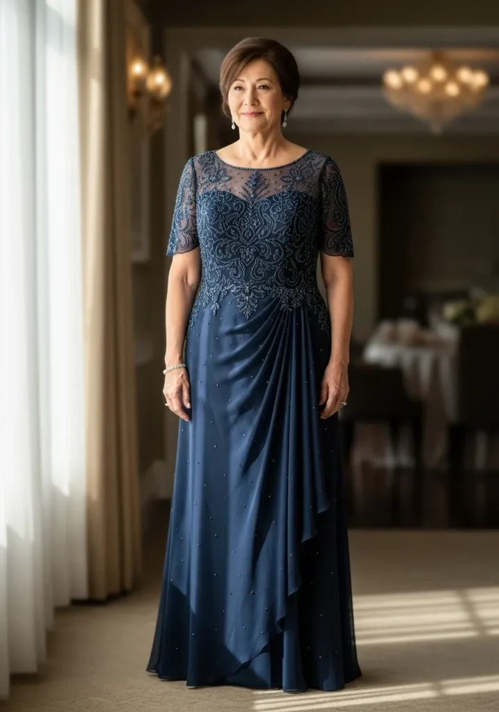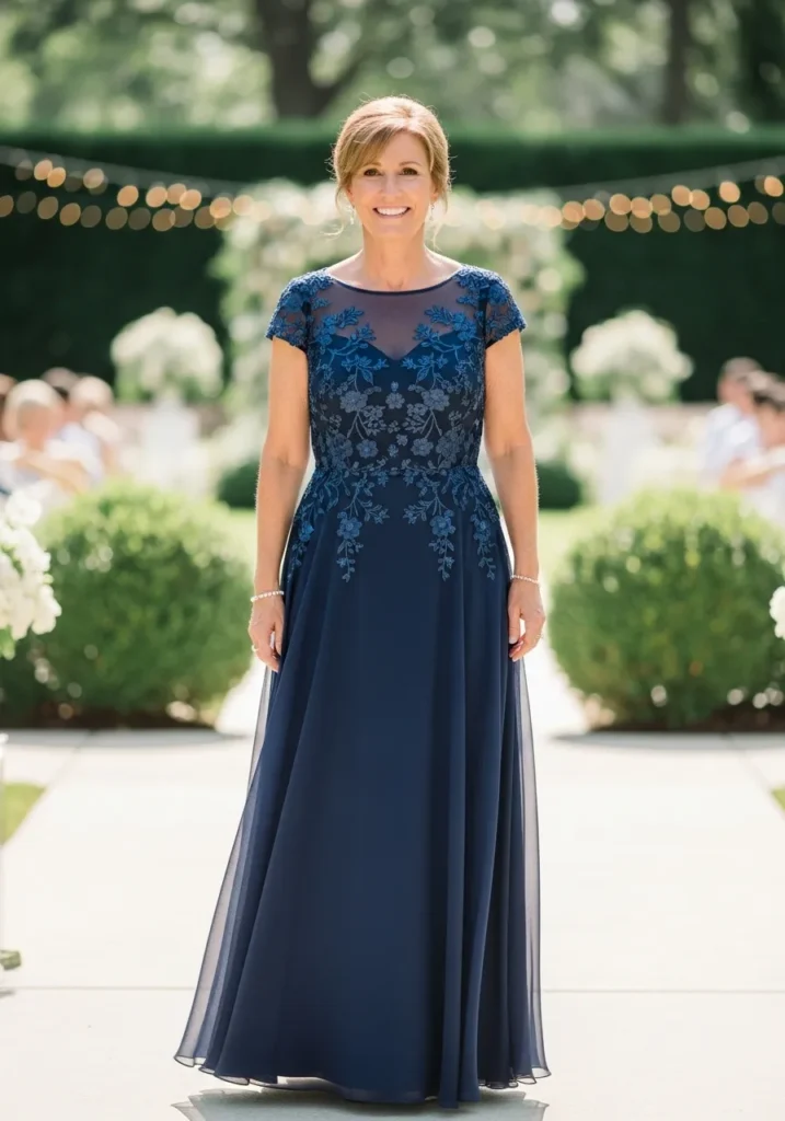 Navy blue has always been one of my go-to colors for special occasions, especially when it comes to mother of the bride dresses, because it feels timeless, elegant, and endlessly flattering.