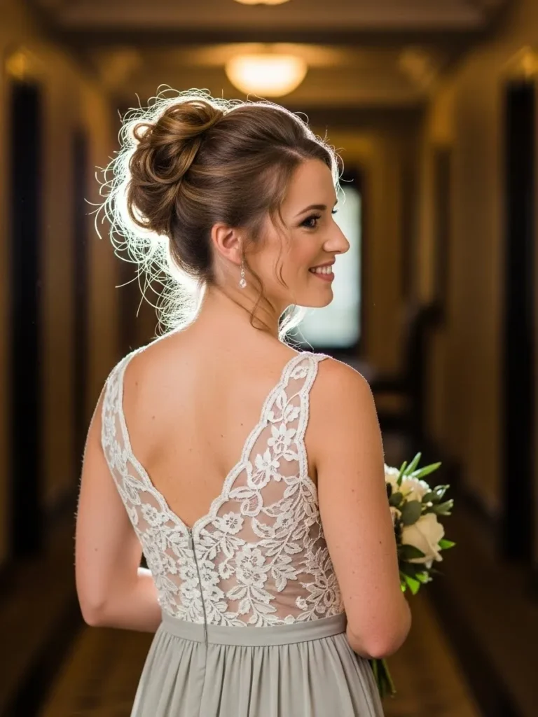 I think this is one of those timeless looks that never disappoints. It feels refined but still approachable, which is exactly what many bridesmaids want. The added volume keeps it from looking too formal or severe.