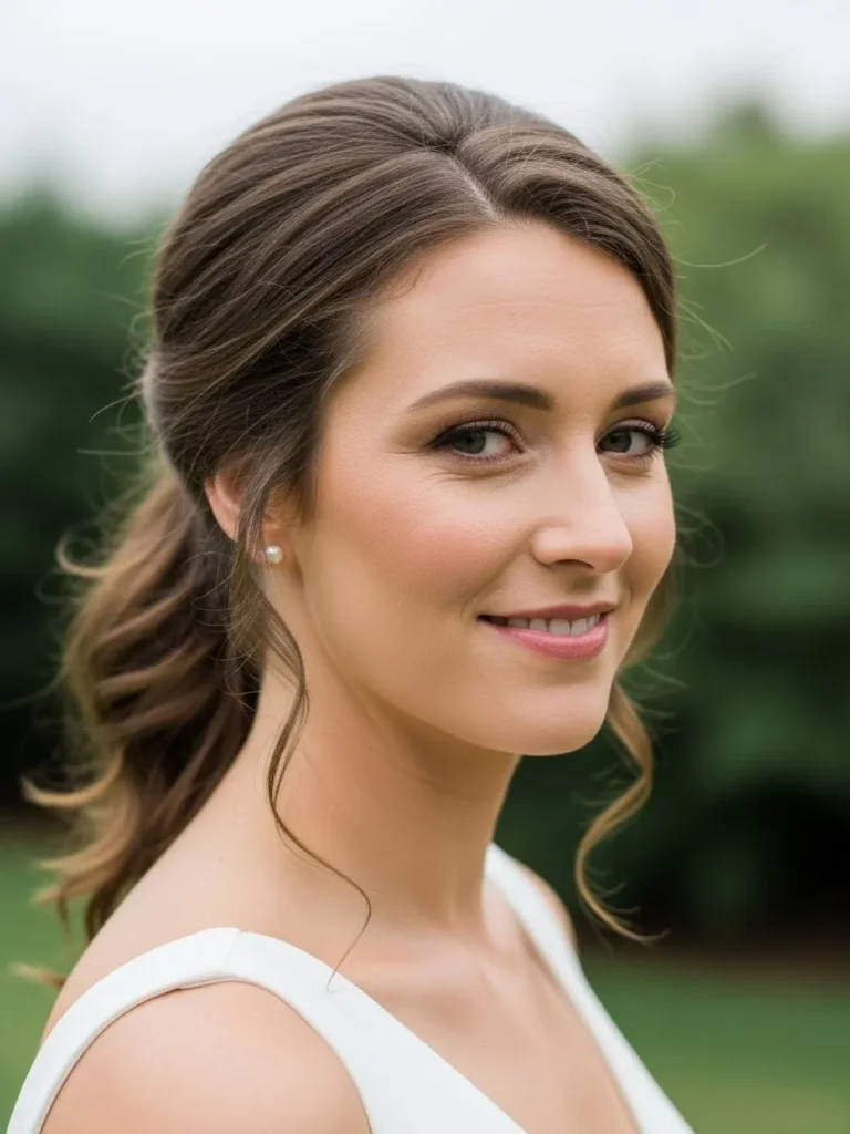 I think this style feels incredibly charming and wearable. The side sweep adds a romantic touch, and the volume keeps it from looking flat in photos. It is one of those hairstyles that feels comfortable but still special.