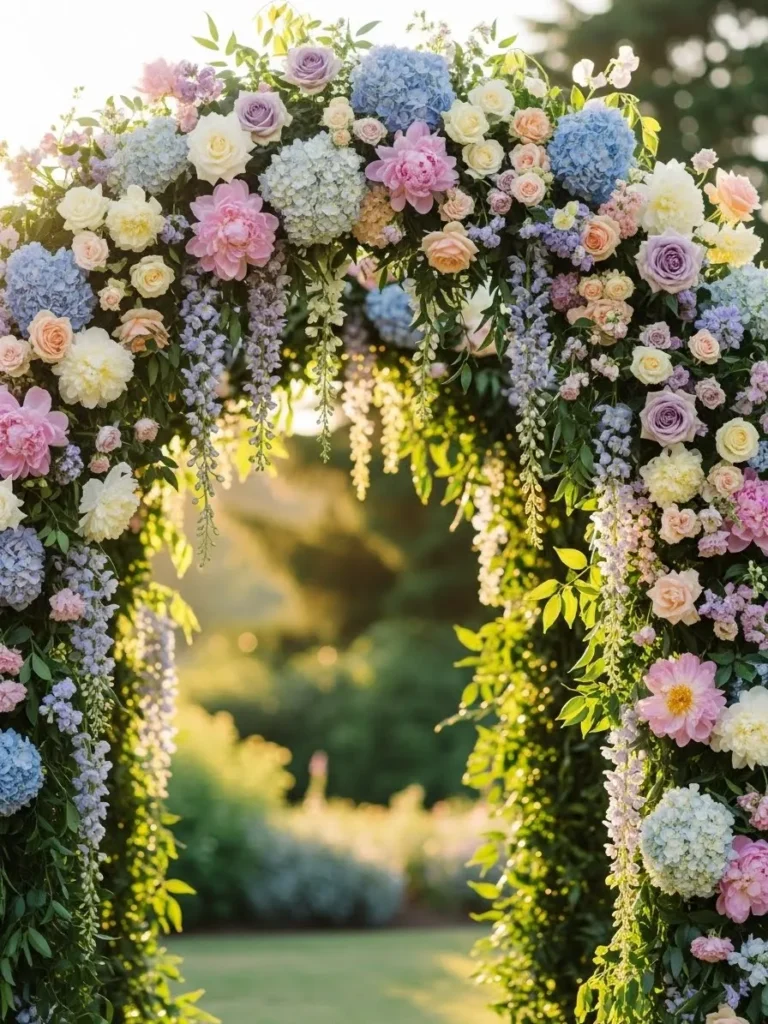 Pastel Garden Arch with Cascading Blooms