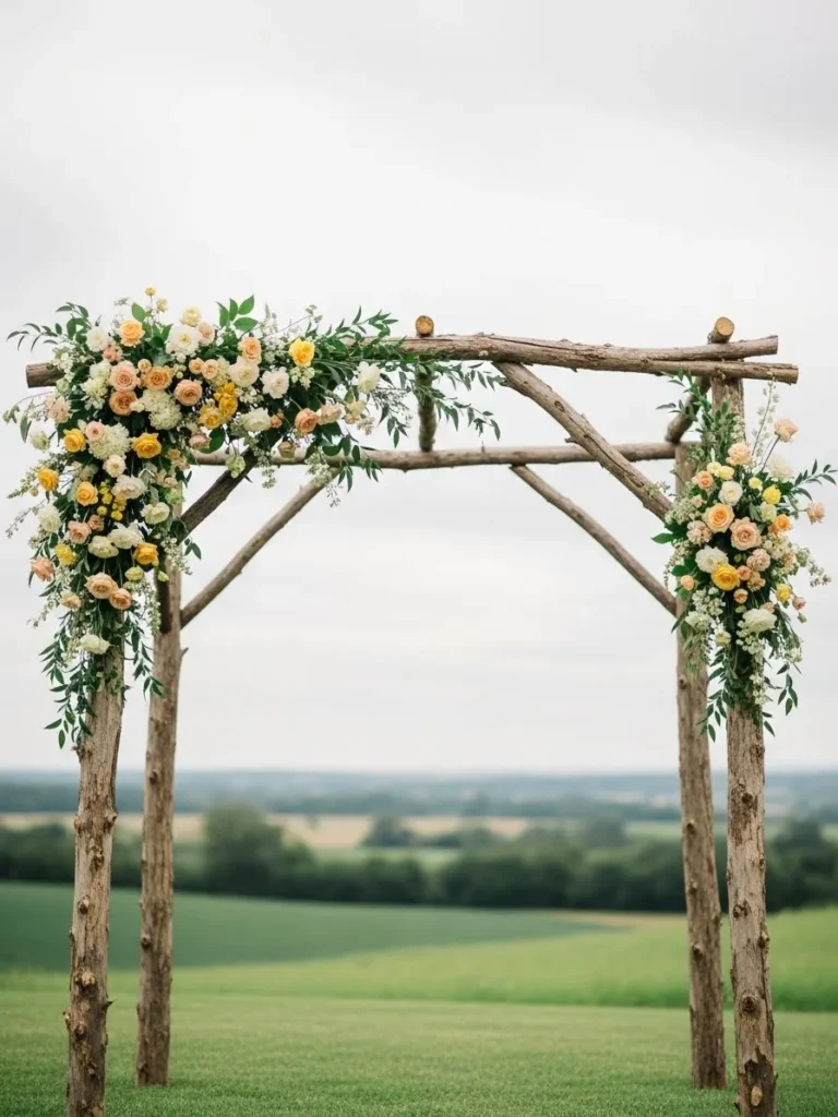Rustic Countryside Arch with Soft Yellow Florals