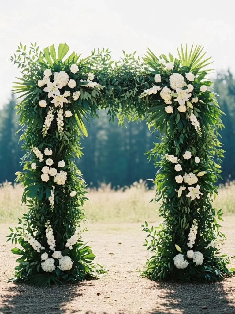 Tropical Greenery Arch with White Flowers