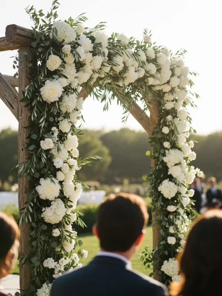 Minimal Wooden Arch with Soft White Florals