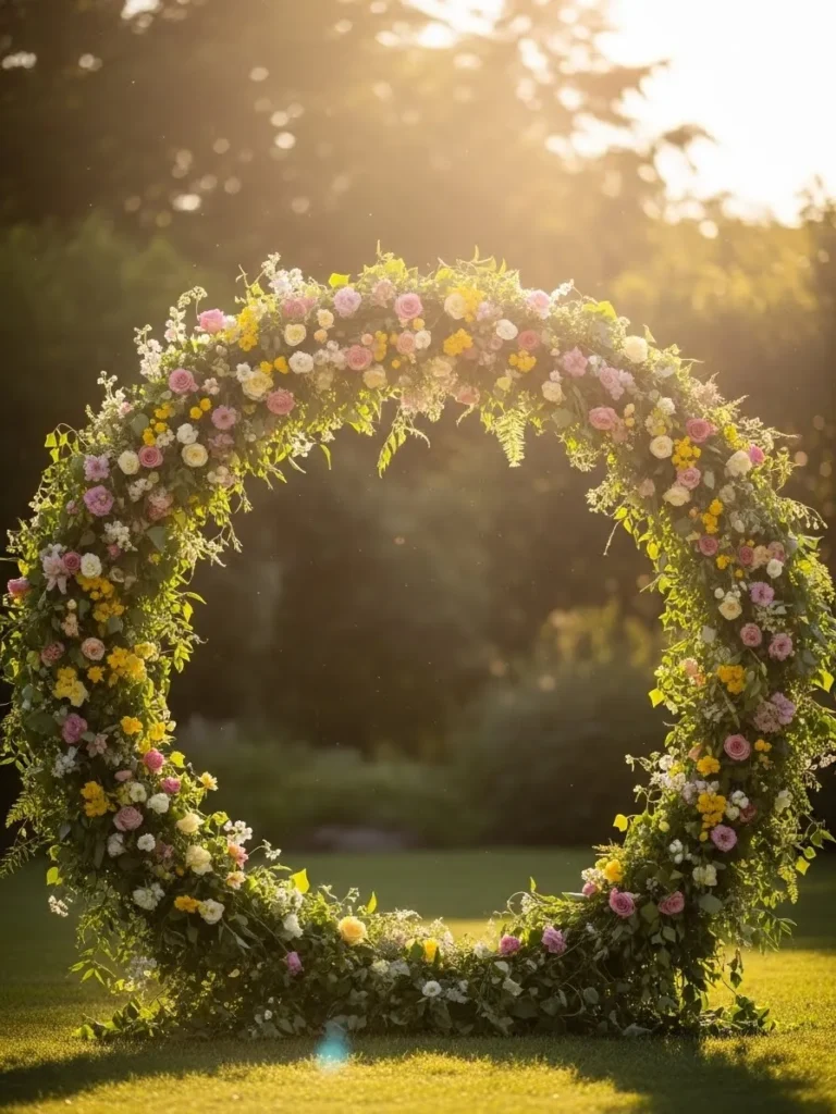 Whimsical Floral Circle Arch at Golden Hour