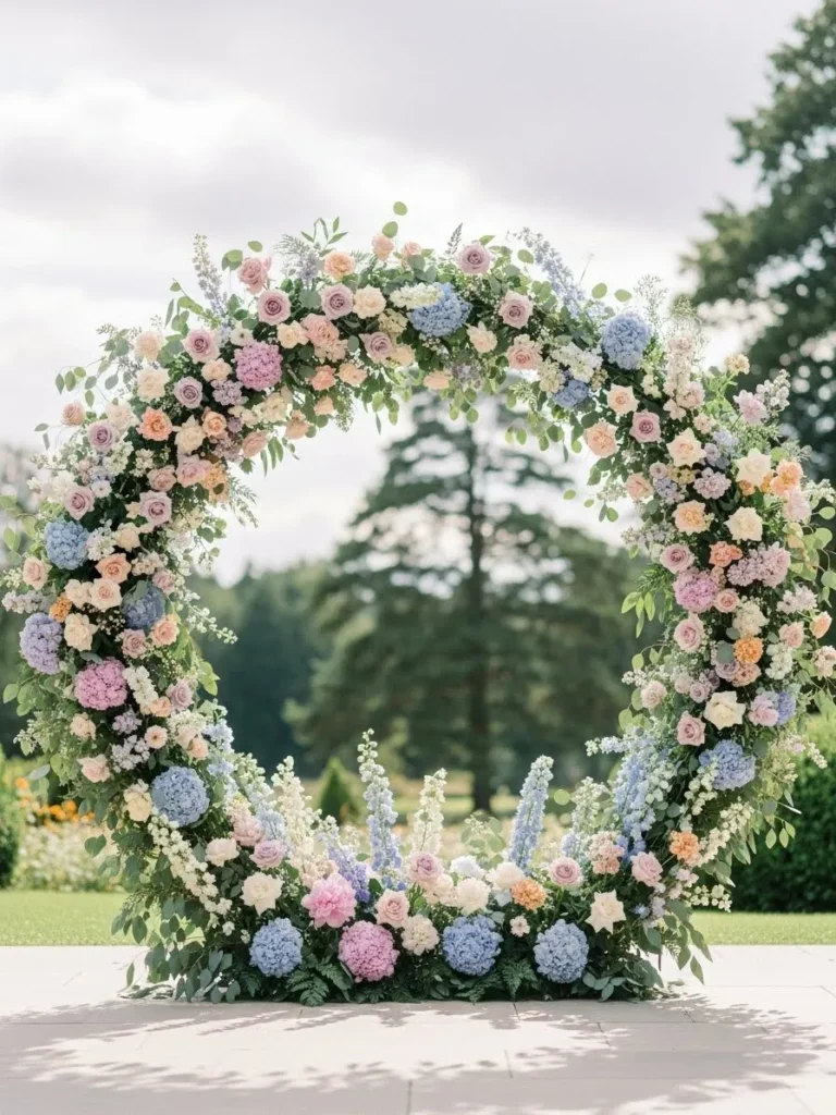 Romantic Circular Flower Arch in Pastel Tones