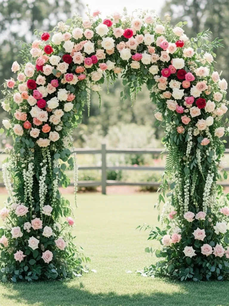 Romantic Greenery Arch with Blush Roses