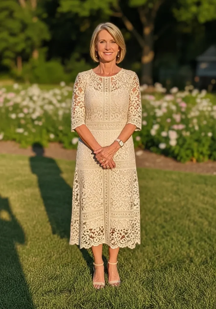 I love how refined and timeless this dress feels. The lace adds just enough elegance, while the relaxed fit keeps it comfortable for long celebrations. It feels like one of those dresses that looks effortlessly polished without feeling formal or restrictive.