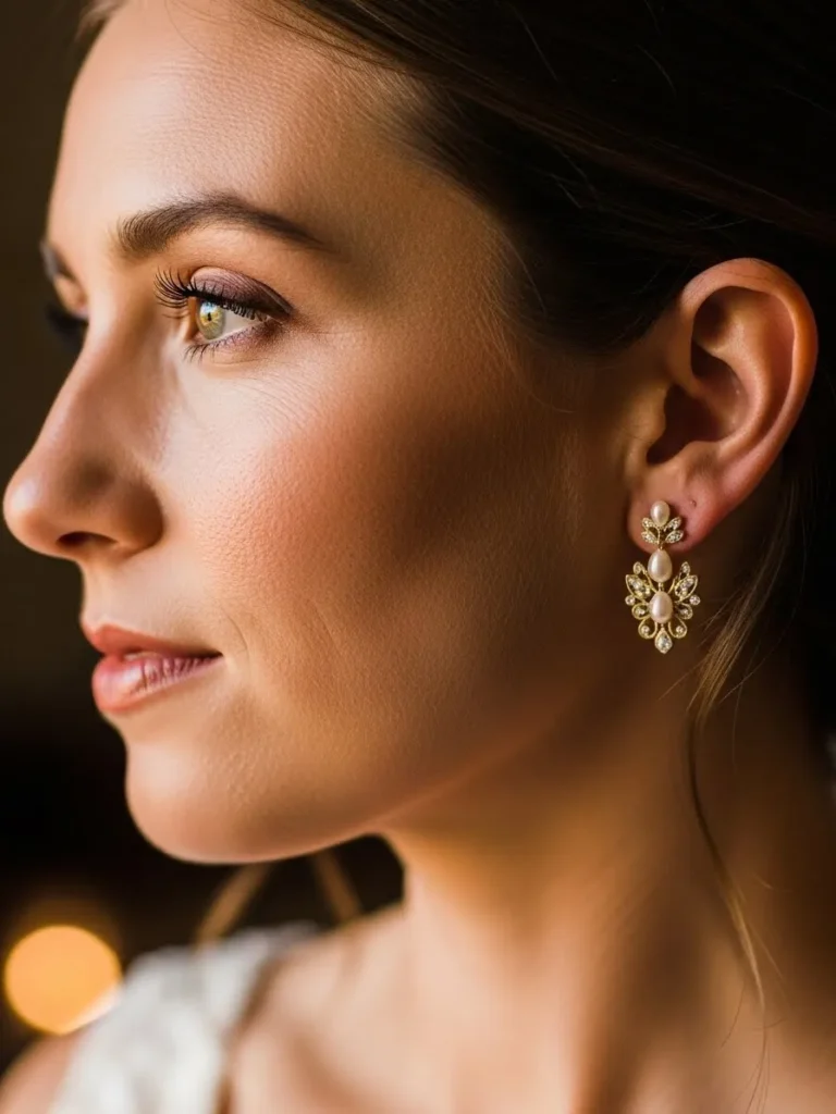 Elegant Bridal Earrings With Warm Glow Makeup