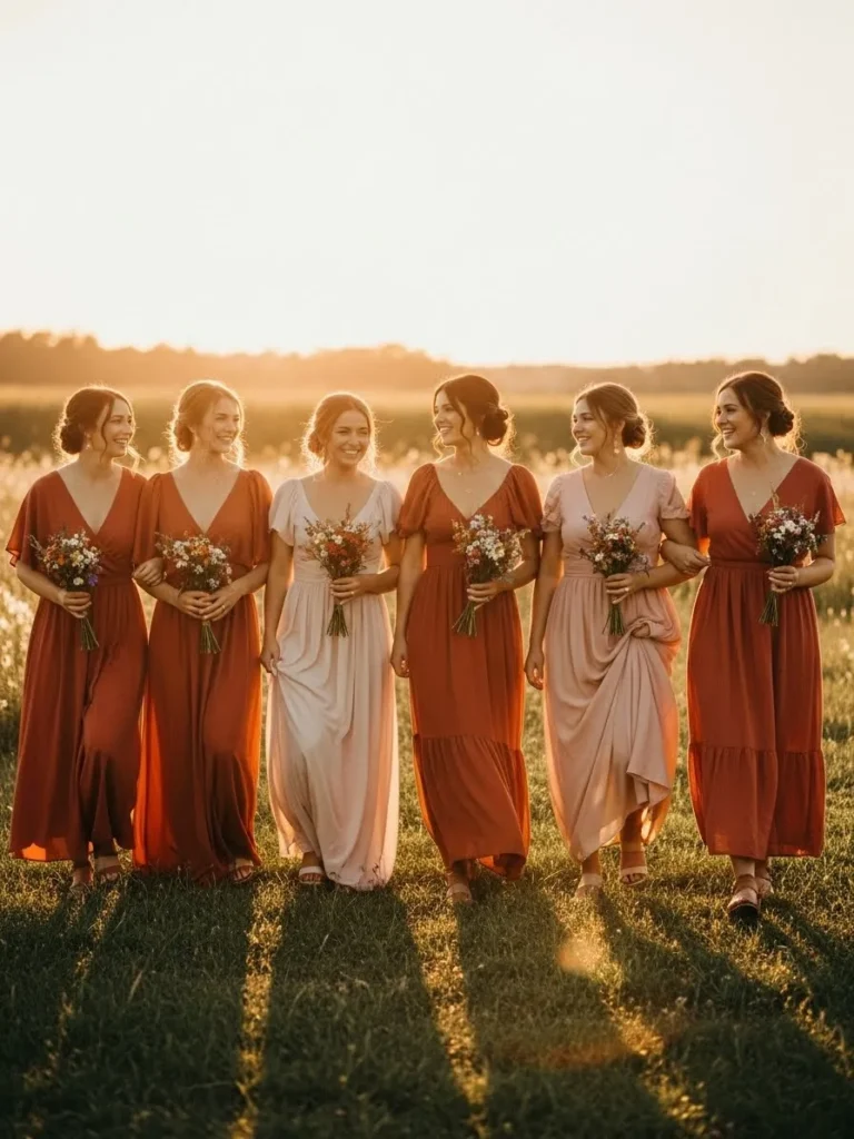 Sunset Bridesmaid Dresses in Warm Terracotta Tones