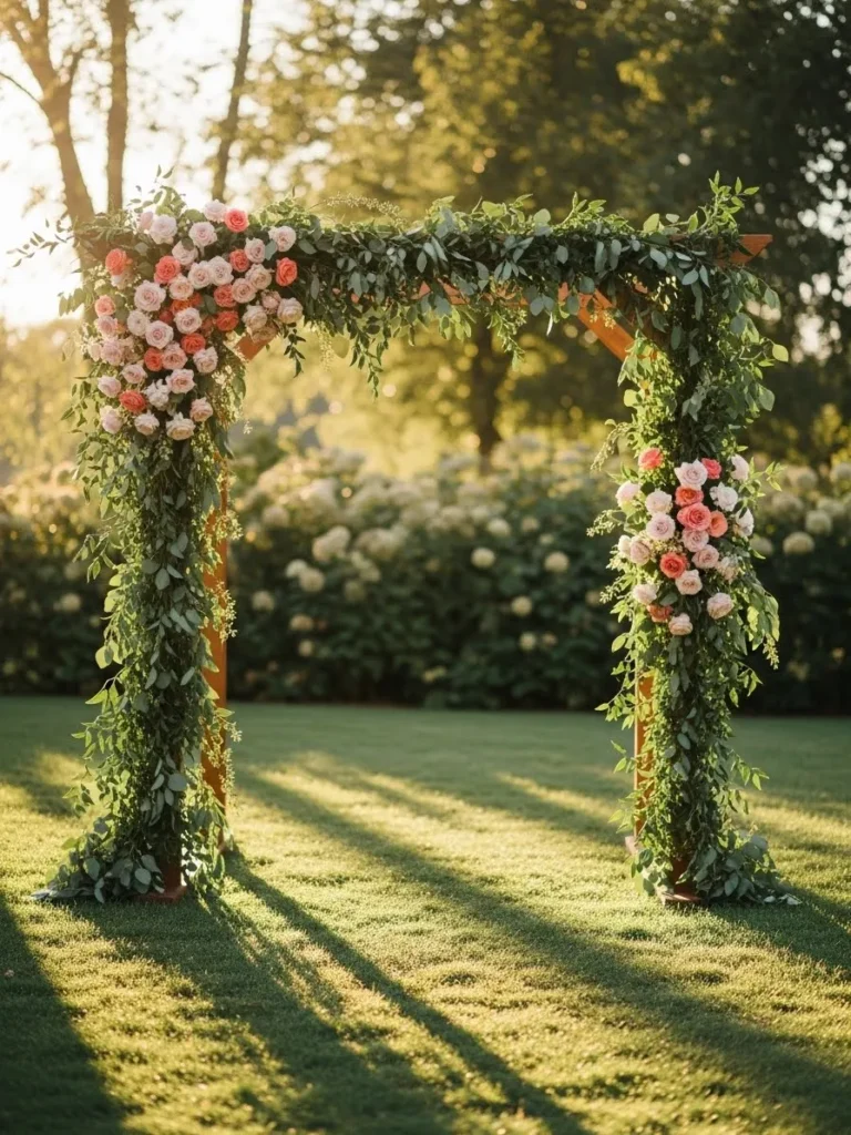 Garden Arch Wrapped in Greenery and Blush Blooms