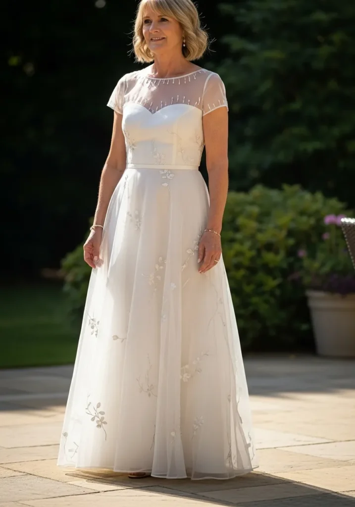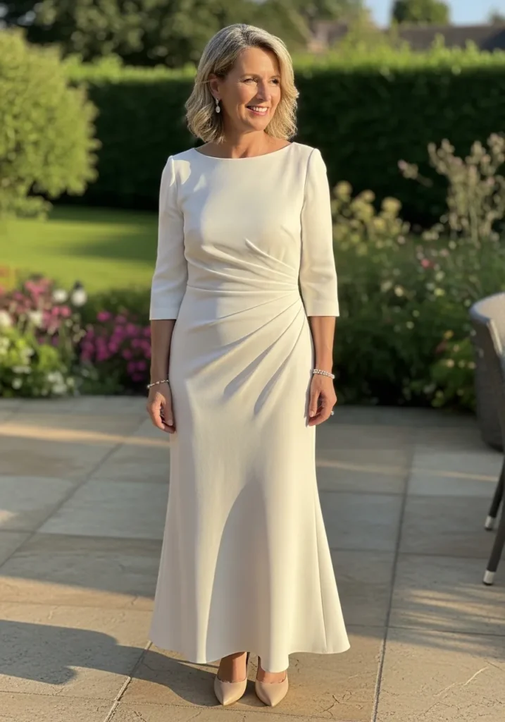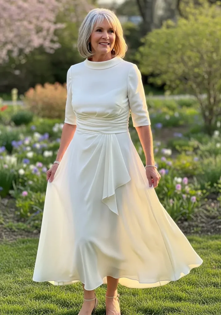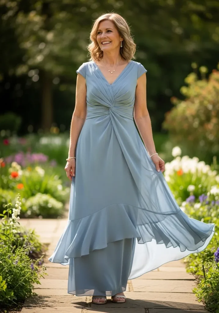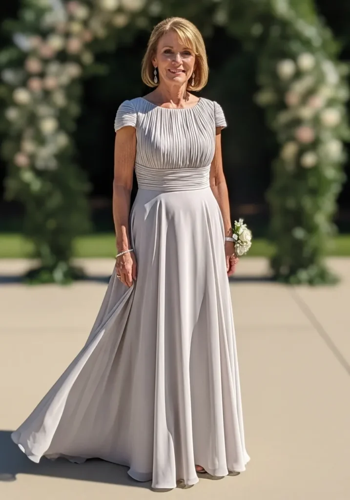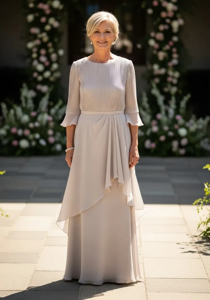 I love how effortlessly elegant this look feels, especially for petite mothers of the bride who want something flattering, comfortable, and timeless, because the layered design adds shape without feeling heavy and creates a soft, romantic presence that feels perfect for a spring wedding.