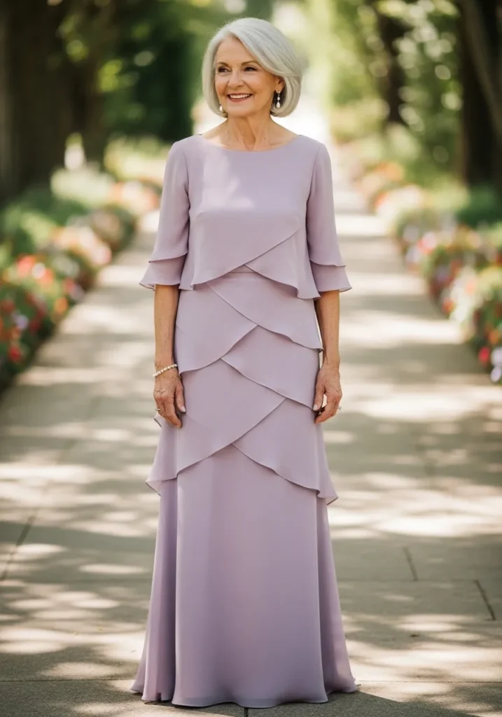 Layered Lavender Chiffon Gown with Soft Romantic Flow