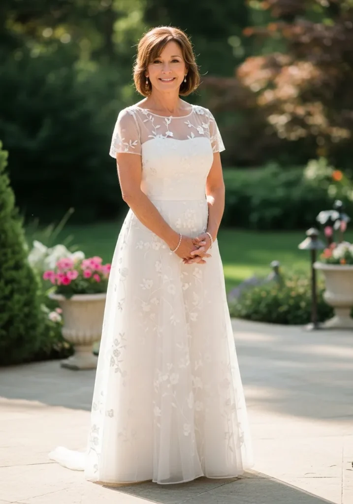 I love how this style feels dreamy yet elegant, especially for moms who want something light, graceful, and picture-perfect for a garden celebration.