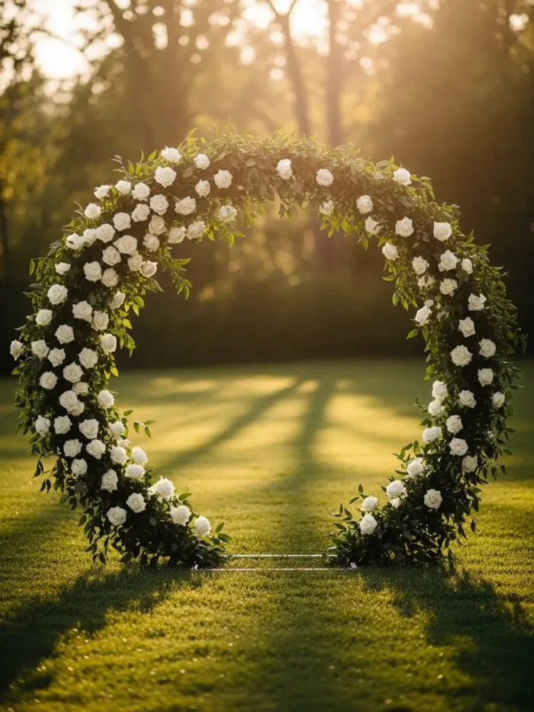 I love how a circular arch feels symbolic and romantic without being overwhelming. It draws the eye naturally and makes the ceremony moment feel intimate and beautifully framed.
