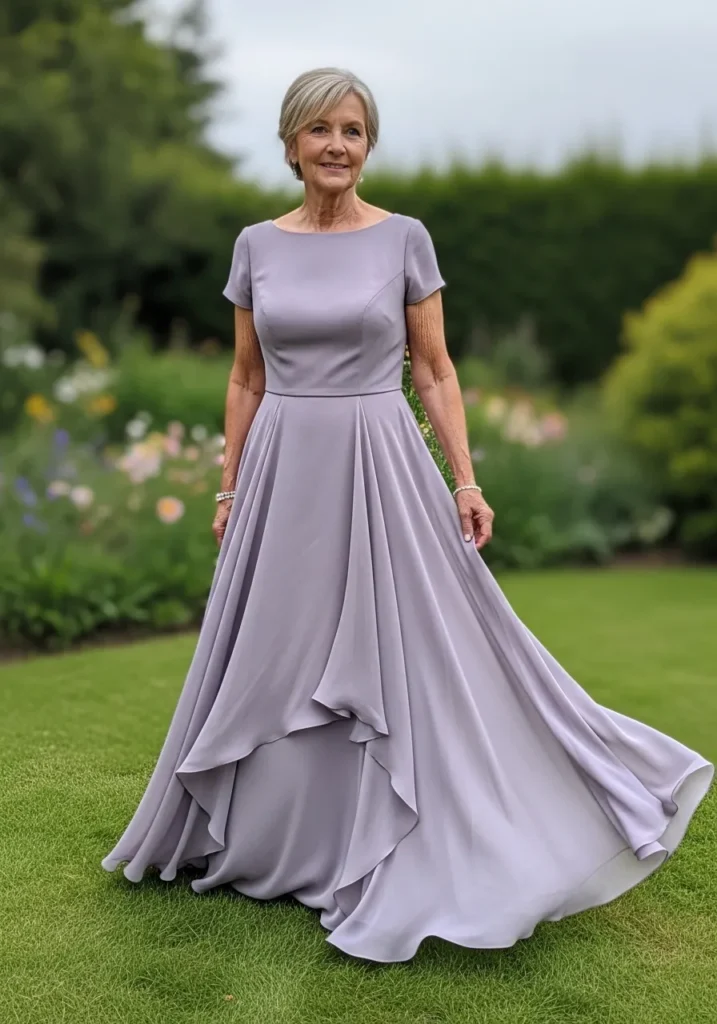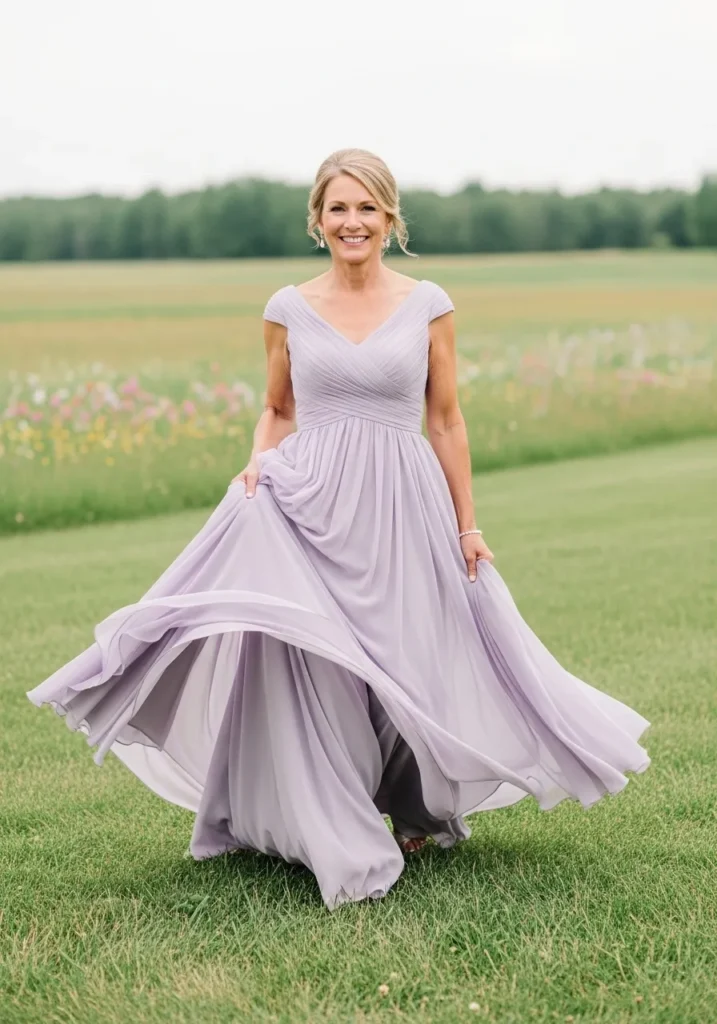 There’s something so calming about this shade of lilac, and I love how the dress flows without overwhelming the overall look. It feels refined, feminine, and incredibly comfortable, which is exactly what I look for in a mother of the bride dress.
