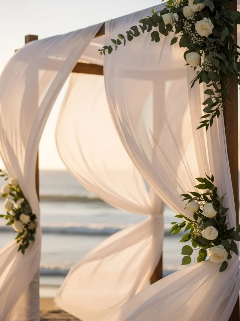Sheer Fabric Beachside Ceremony Arch