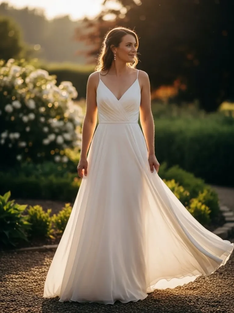 I am such a fan of dresses that feel elegant yet uncomplicated, and this gown feels incredibly flattering while still staying relaxed, making it ideal for a warm weather wedding where comfort matters just as much as style.