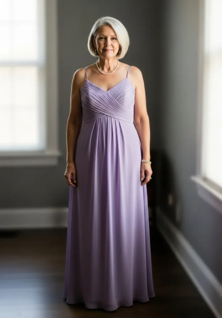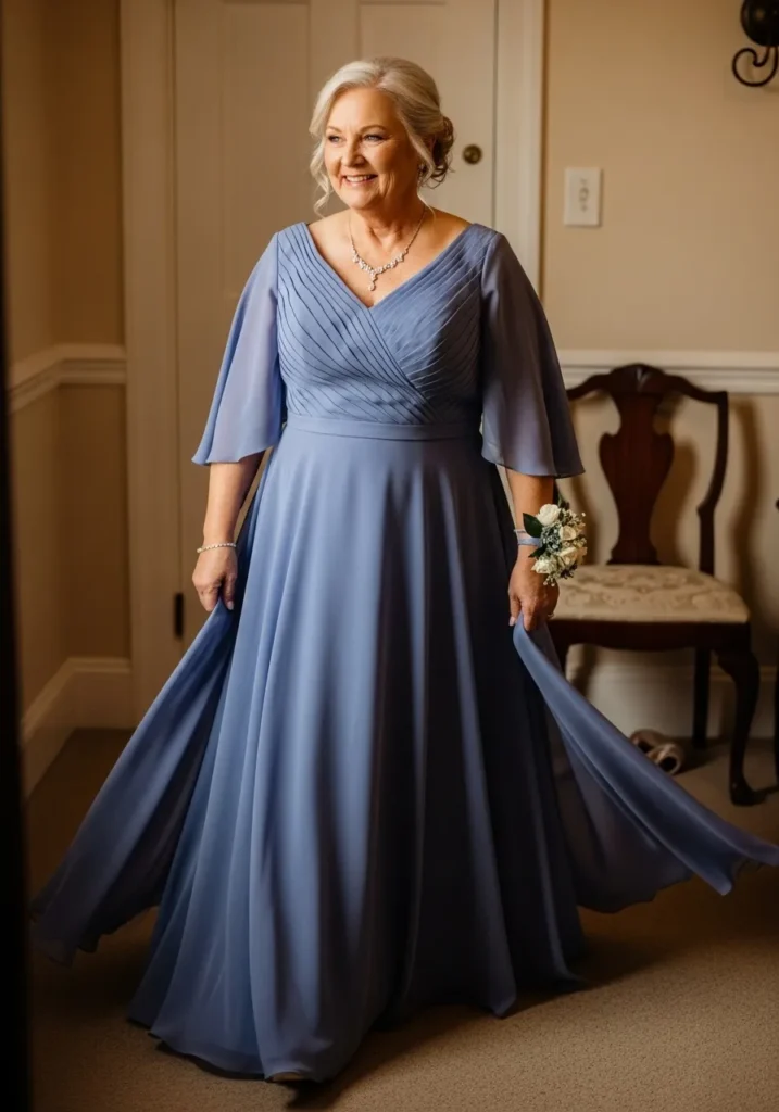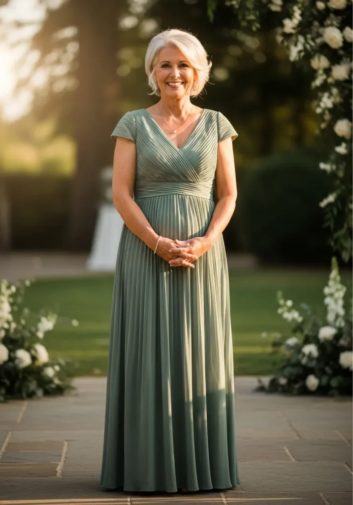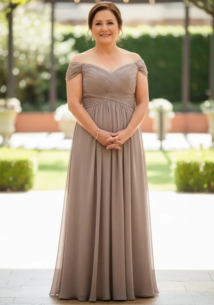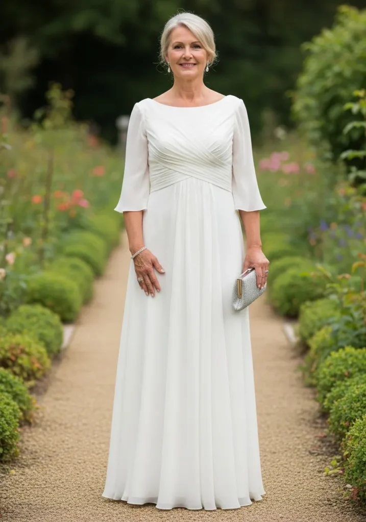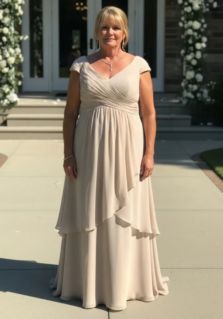 I find this style incredibly charming because it feels soft, relaxed, and elegant all at once. It is the kind of dress that makes you feel instantly comfortable and confident, which is exactly what every mother of the bride deserves.