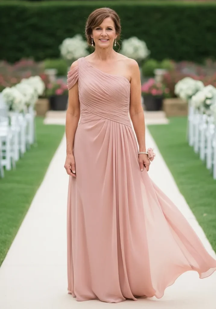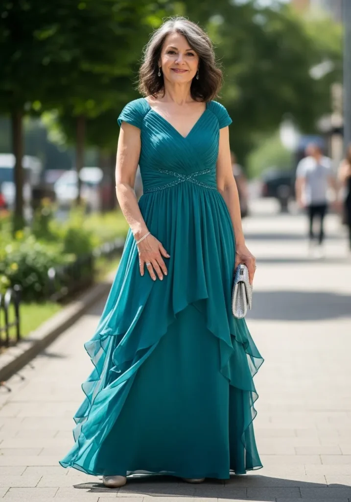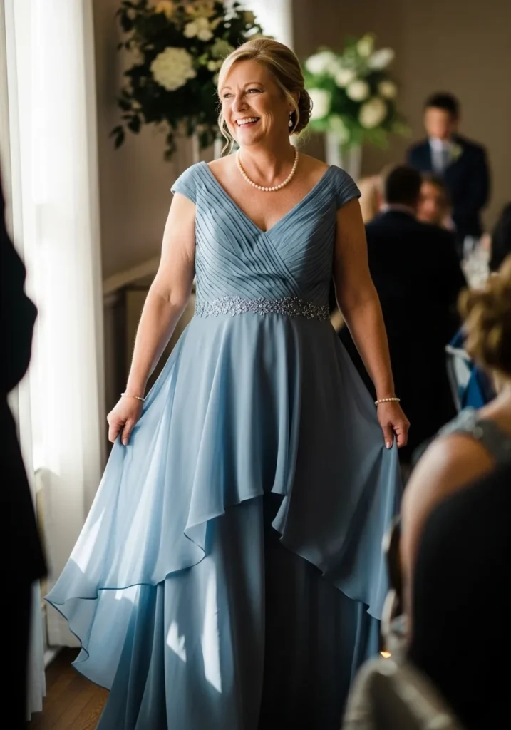 I find this style incredibly graceful and flattering, especially for formal celebrations. It feels like the kind of dress that makes walking into the venue feel extra special, which is exactly how every mother of the bride deserves to feel.
