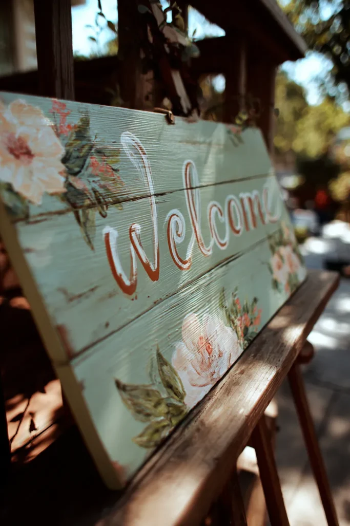 Hand-Painted Shabby Chic Welcome Sign