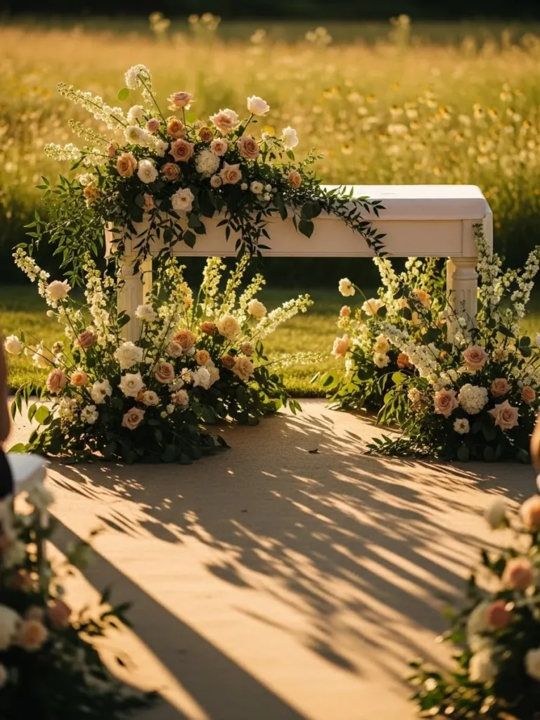 I love how this setup feels calm and romantic without trying too hard. It looks like the flowers belong right there, growing alongside the moment. To me, it feels peaceful and heartfelt, which is exactly the kind of energy a ceremony should have.