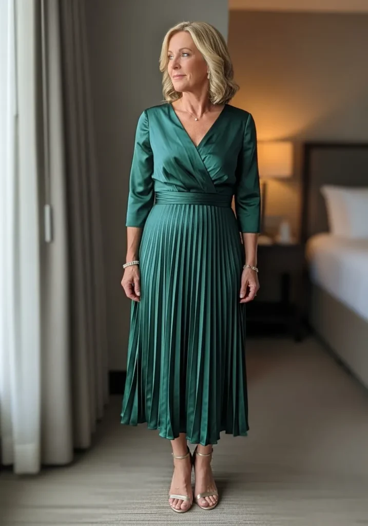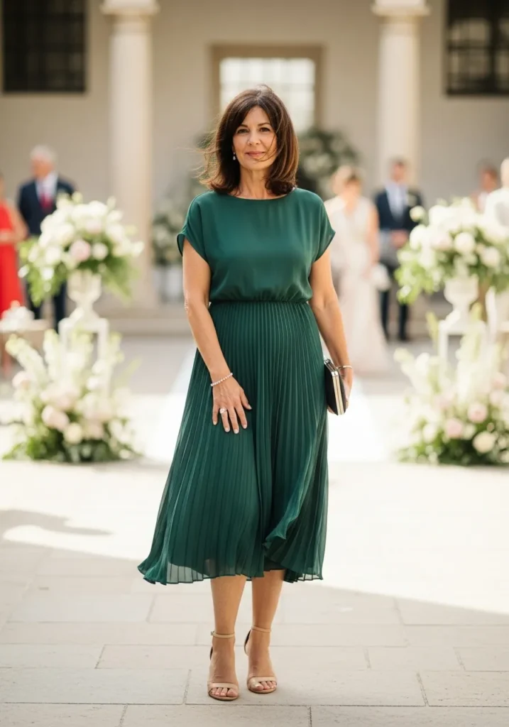 I think this style is such a refreshing option for mothers who want something chic without going overly formal. The pleats add beautiful texture, and the midi length feels youthful and polished at the same time. It is effortlessly stylish in the most wearable way.