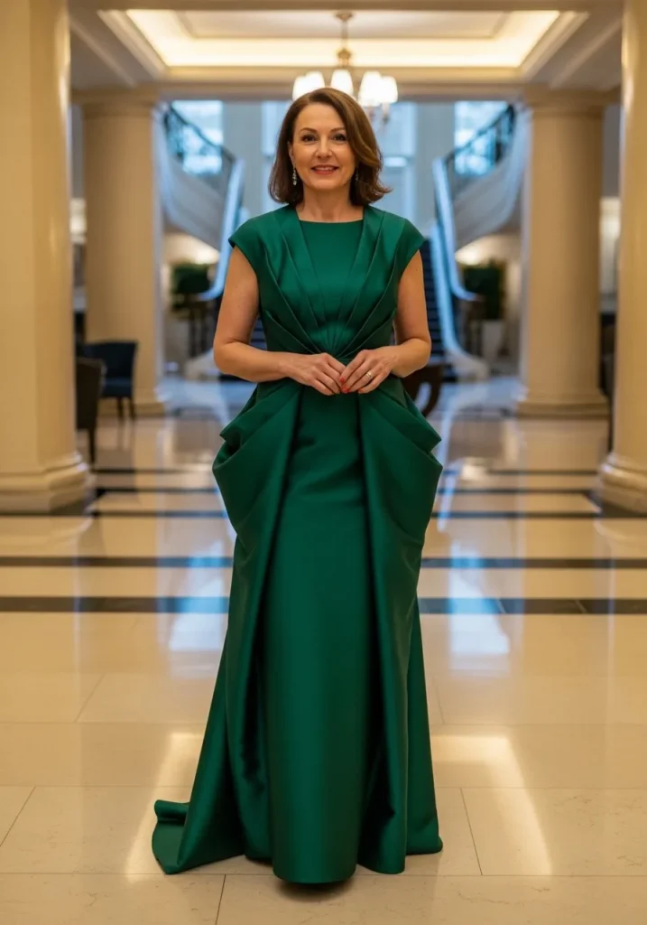 Structured Emerald Gown with Modern Minimalism