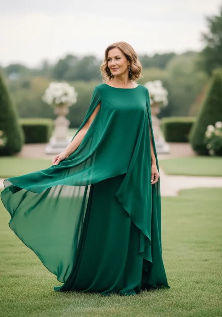 Cape Style Forest Green Gown with Dramatic Flair