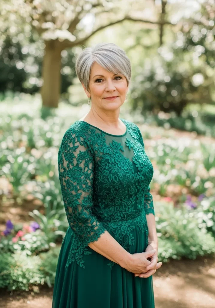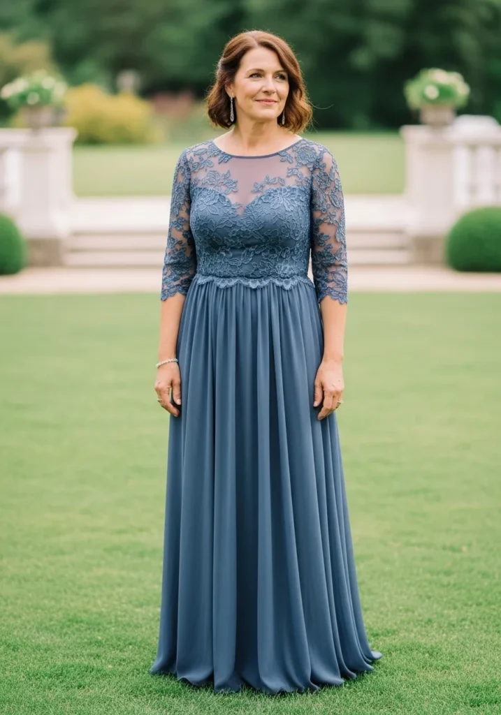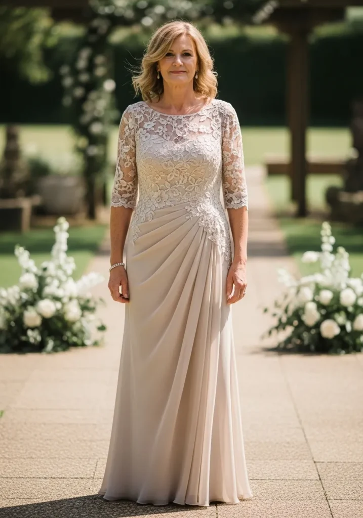 I can’t get over how effortlessly regal this look feels, especially for an outdoor garden wedding. It strikes such a perfect balance between sophisticated and soft, which makes it ideal for mothers who want to feel refined yet relaxed on such a meaningful day.