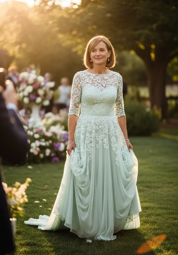 Soft Mint Lace Gown with Romantic Outdoor Glow