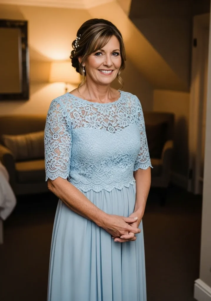 I think this style feels incredibly chic and modern while still staying timeless. It’s perfect for mothers who love a refined look that feels light, airy, and completely effortless from ceremony to reception.