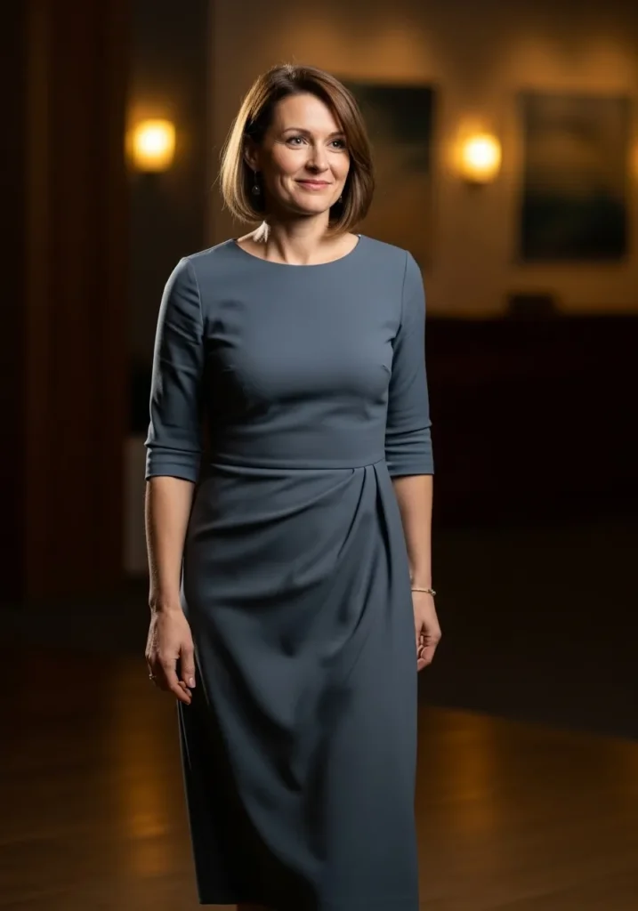 I love how this dress proves that simple can still be striking. The soft metallic tone feels current and chic, and the fit is comfortable enough to wear all day without fuss. It is perfect for a modern mother of the bride who wants something stylish, flattering, and effortlessly cool.