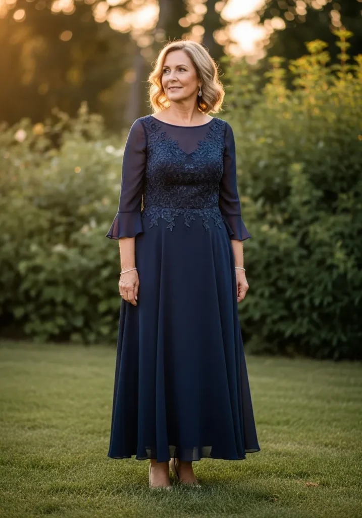 I adore navy for formal occasions because it offers a polished alternative to black while still feeling elegant and classic. No matter your style, this kind of design always feels graceful, flattering, and effortlessly timeless.