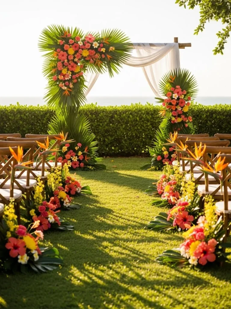 I think this setup feels incredibly joyful. The colors feel full of life and energy without feeling overwhelming. It makes the ceremony space feel warm welcoming and truly celebratory.