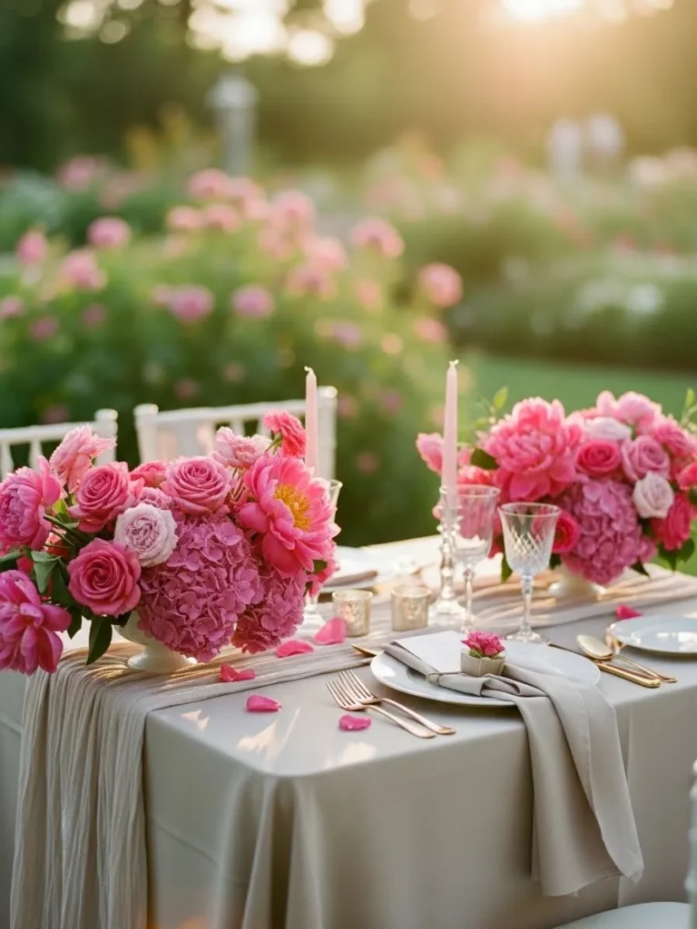 I think this setup feels absolutely magical. The colors remind me of a summer sunset which always feels romantic and celebratory. It has that warm inviting glow that makes guests want to linger at the table and soak in every moment.