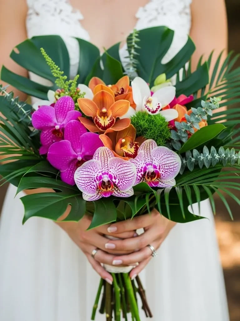 I think tropical bouquets are such a fun summer choice. The colors feel alive and confident. It makes a strong statement while still feeling bridal and romantic.