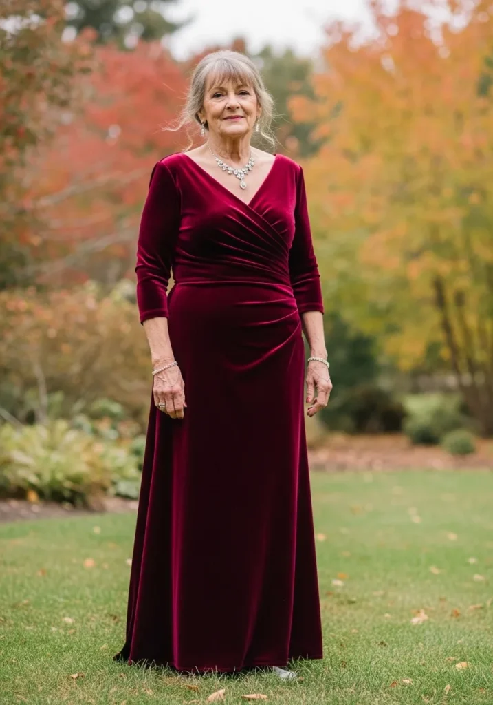 I can’t get enough of how warm and dramatic this shade looks against autumn tones. It feels classic yet special, and I think it’s such a flattering choice for mothers who want elegance with a hint of romance.