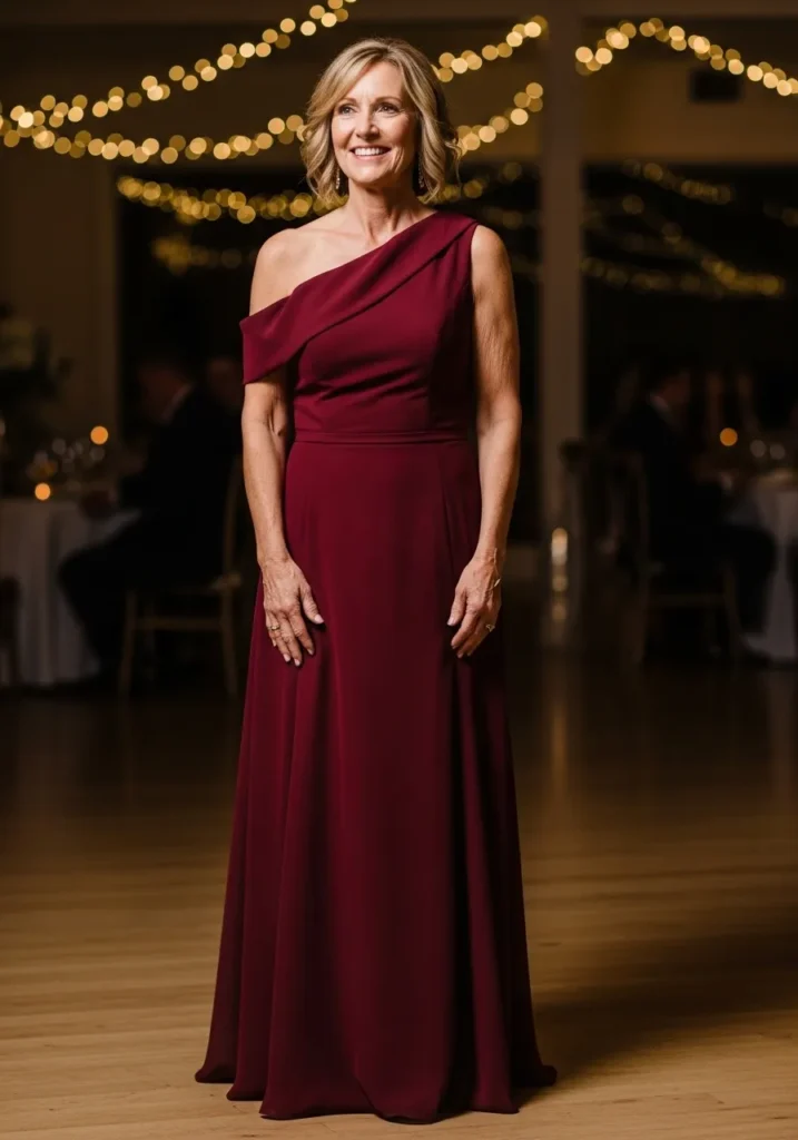 One Shoulder Burgundy Gown with Modern Elegance