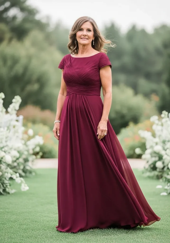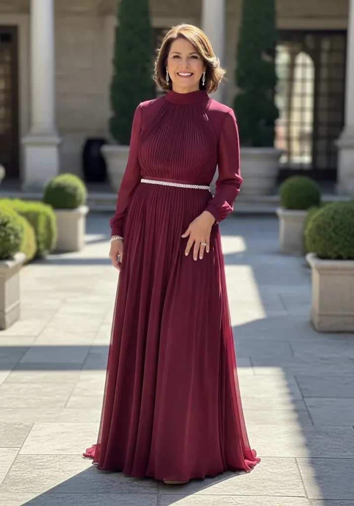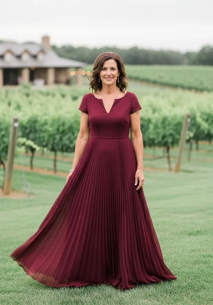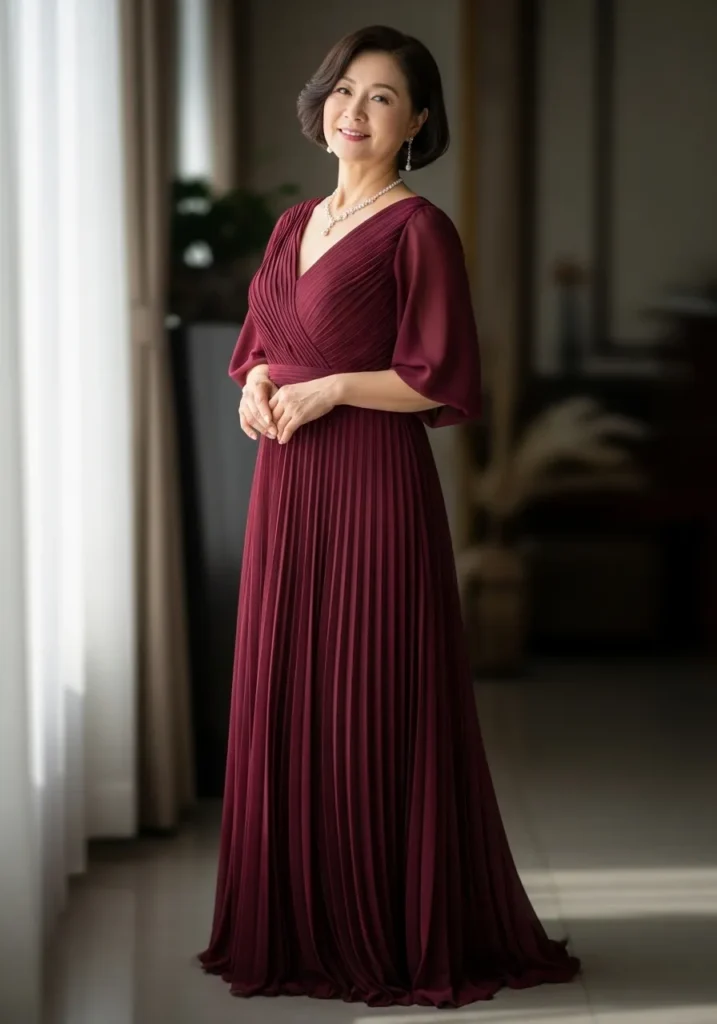 Soft Pleated Wine Gown with Romantic Flow