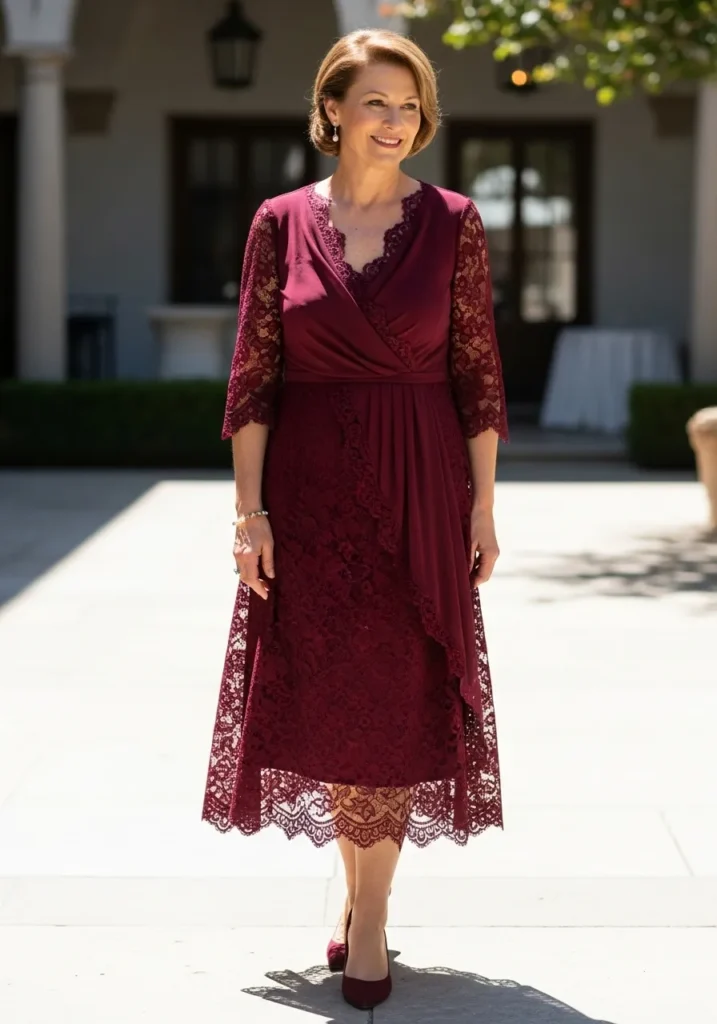 Romantic Lace Midi Dress in Deep Wine