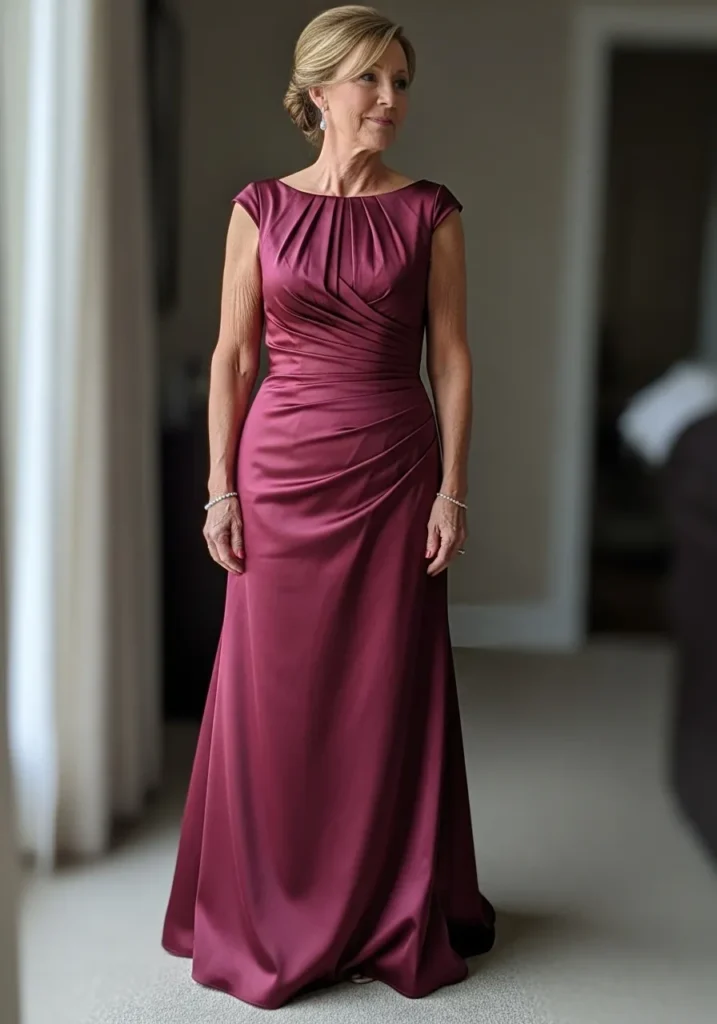 Sophisticated Draped Satin Gown in Rich Burgundy